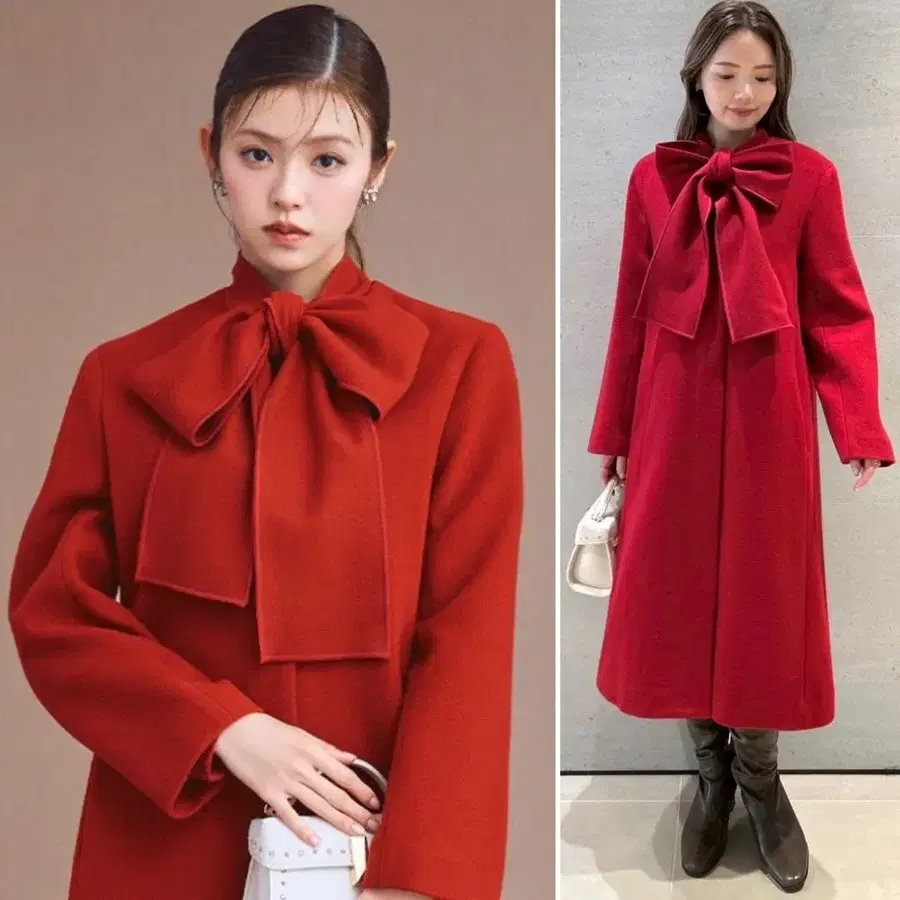 • Bou Jeloud 새상품 빅 숄카라 롱 코트 충전솜 레드 가을/겨울