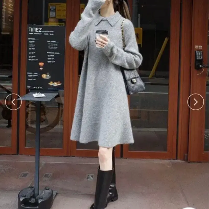 미라 오웬 카라 부착 페플럼 니트 미니 원피스