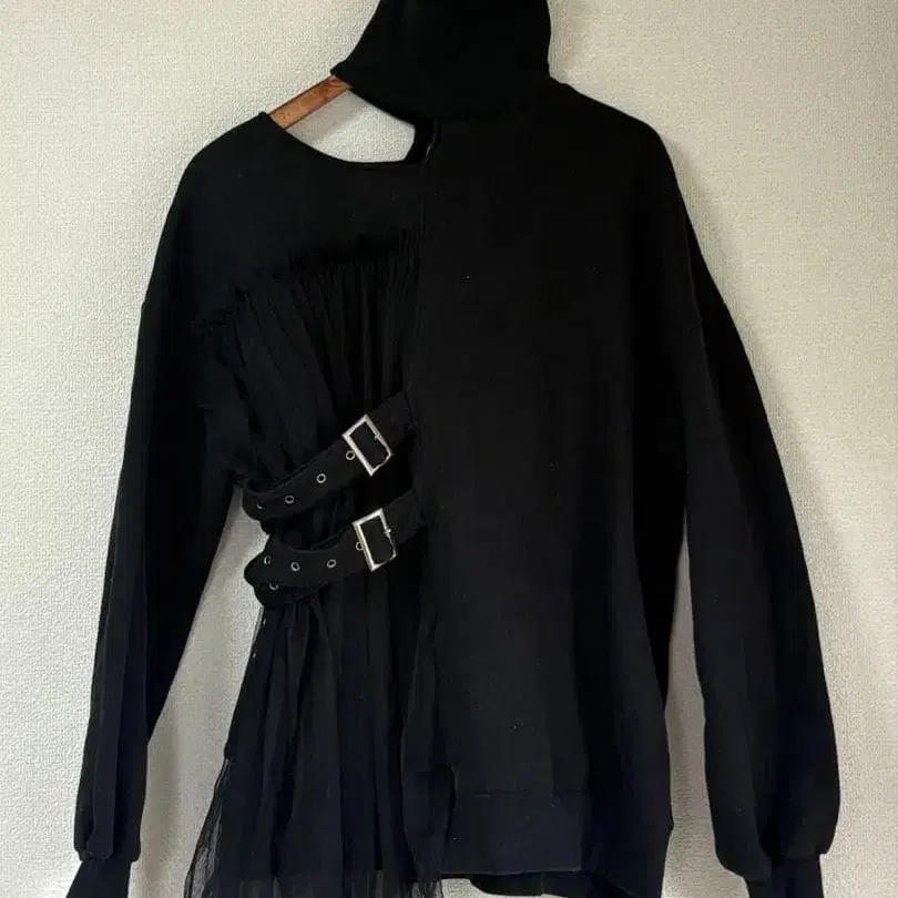 BUBBLES 블랙 튤 절개 트레이닝복 원피스