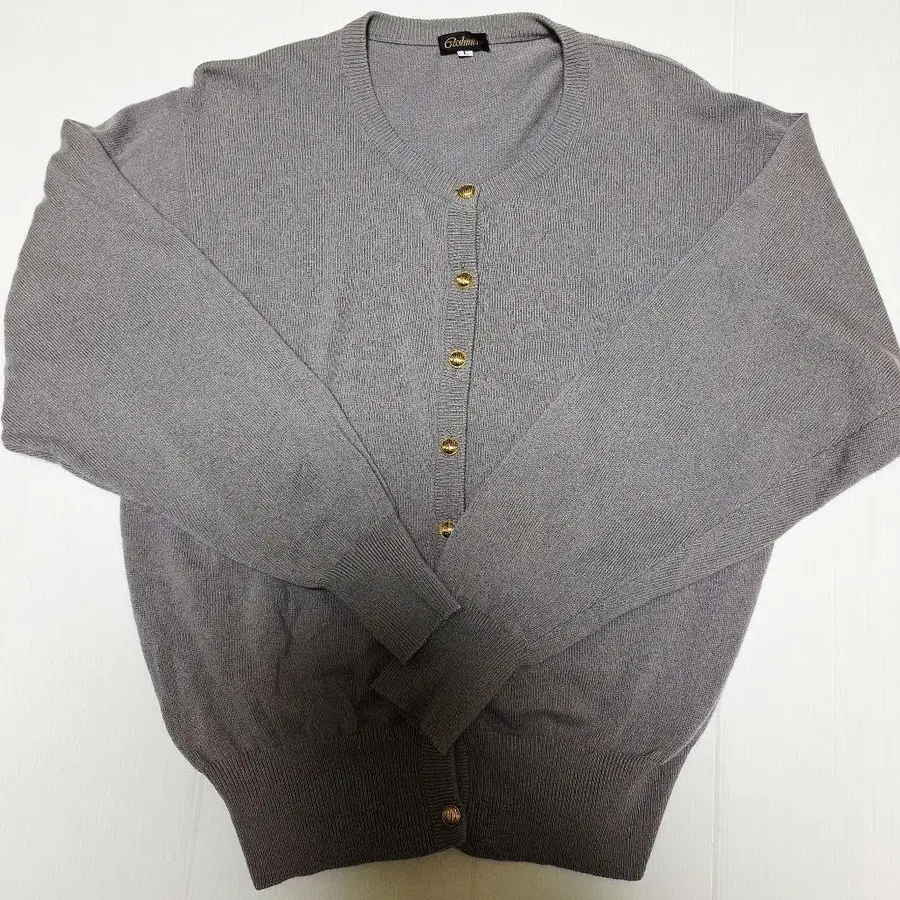 여성용 여성 캐시미어 100% 그레이 니트 가디건 긴팔 L 사이즈
