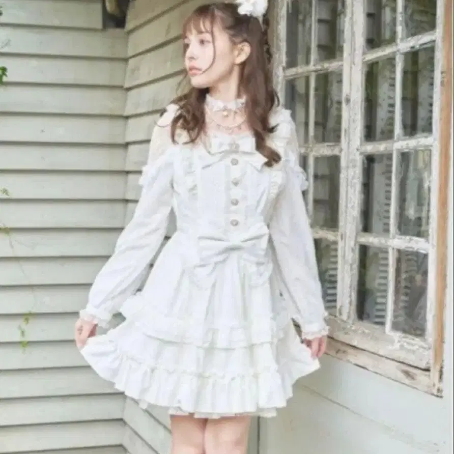 LIZLISA 티아라 리본 티어드 원피스 화이트 (가슴 부분 리본 없음)