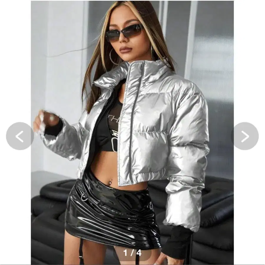 [ 새상품급 ] shein 실버 크롭 다운 자켓 L 사이즈