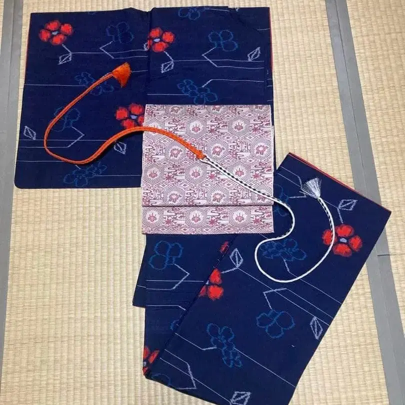 새상품급 앤티크 울 기모노 나고야 오비 매실매실 세트 설날