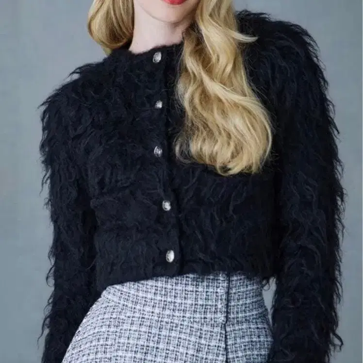 riu 퍼 가디건 블랙 새상품급 럭셔리 성숙/러블리 가을/겨울/봄