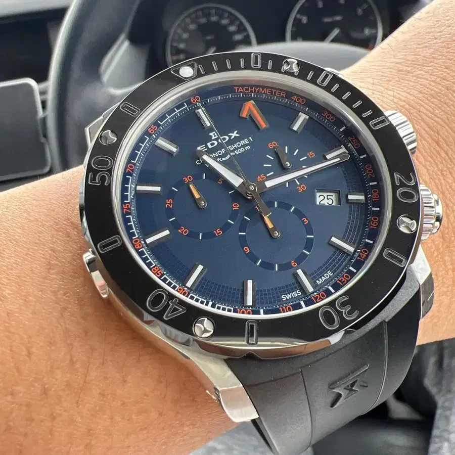 EDOX 크로노오프쇼어1 크로노그래프 손목시계 네이비 x 오렌지 다이얼
