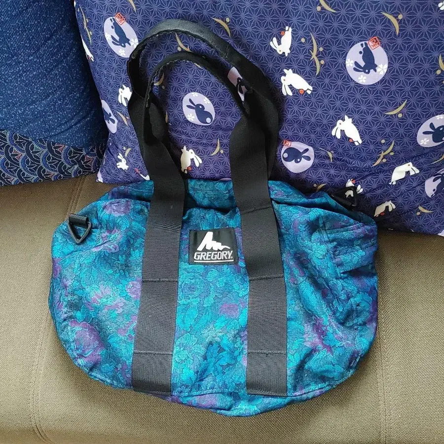 GREGORY 파랑 보라색 꽃무늬 토트백 XS