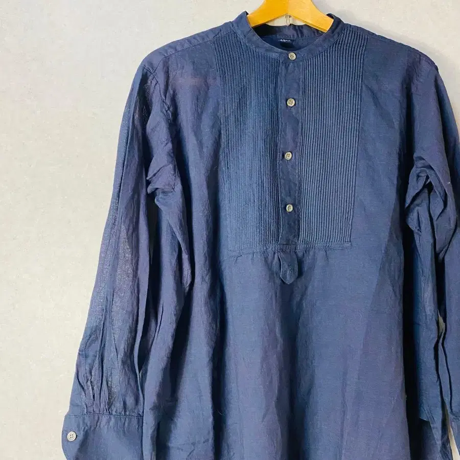 45 린넨 네이비 긴팔 셔츠 핀턱
