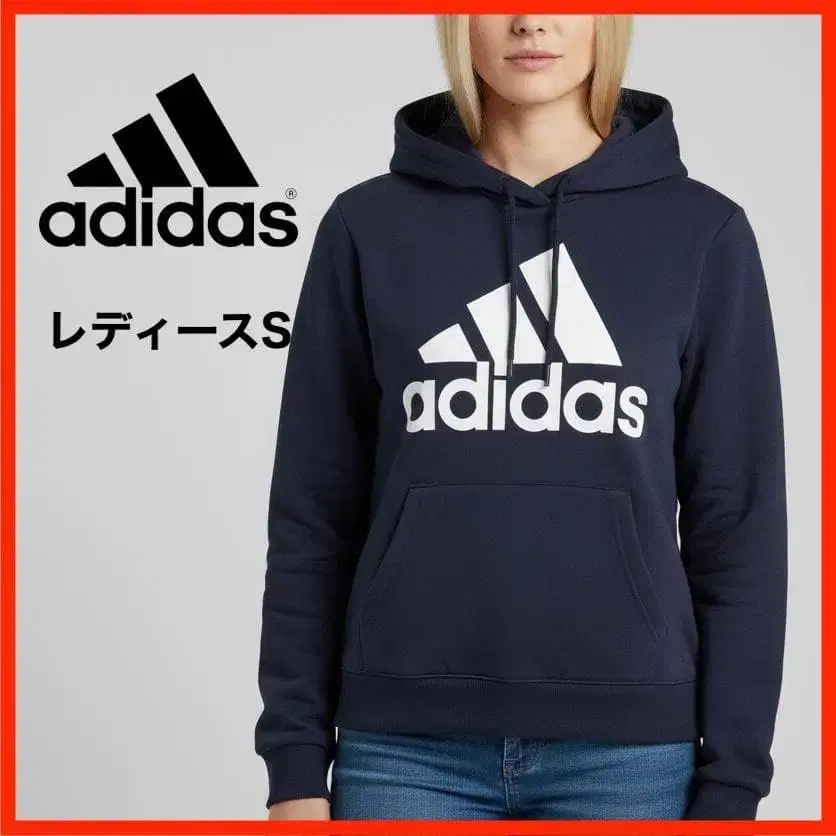 A4375 새상품급 adidas*후드티 트레이닝복*프린트 로고*S*네이비