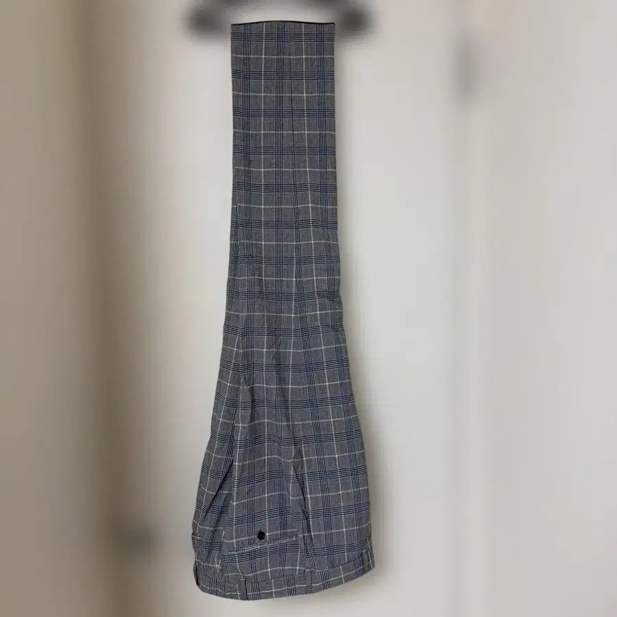 자동 번역되었어요. 원문보기울 혼방 소재의 그레이, 블루, 화이트 체크 무늬 슬랙스.