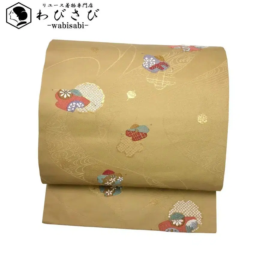 나고야 오비 허수아비 눈꽃 무늬 흐르는 물 꽃무늬 밀짚색 O-2611