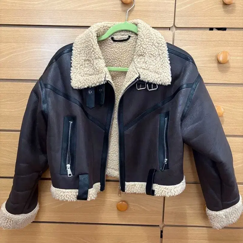 브라운 숏 기장 무스탕 코트
