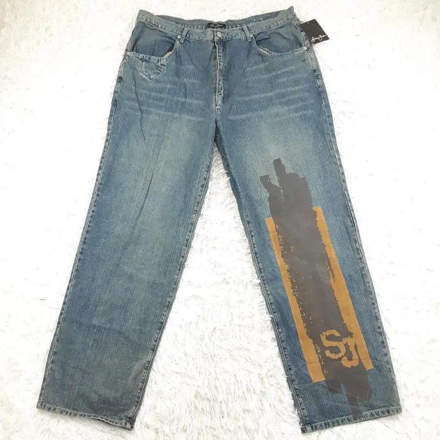 새상품급 ◎ Sean John 쇼운 존 데님 팬츠 블루 계열 청 계열 스웨이드 디자인 로고 페인트 택 포함
