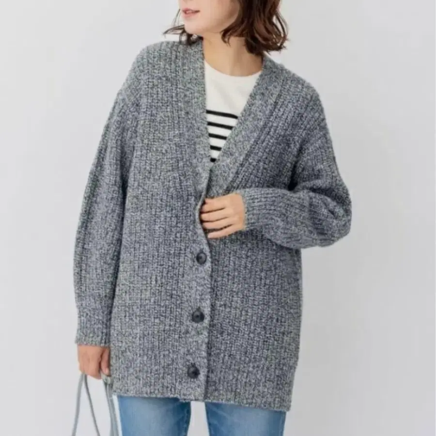 새상품급 23구 울 벌키 컬러 믹스 가디건 38
