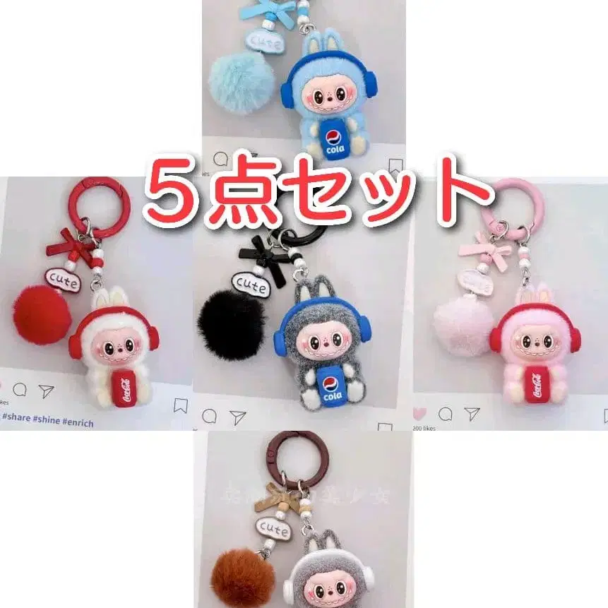 러브부 봉제 인형 키링 5개 세트 콜라 폼폼 포함