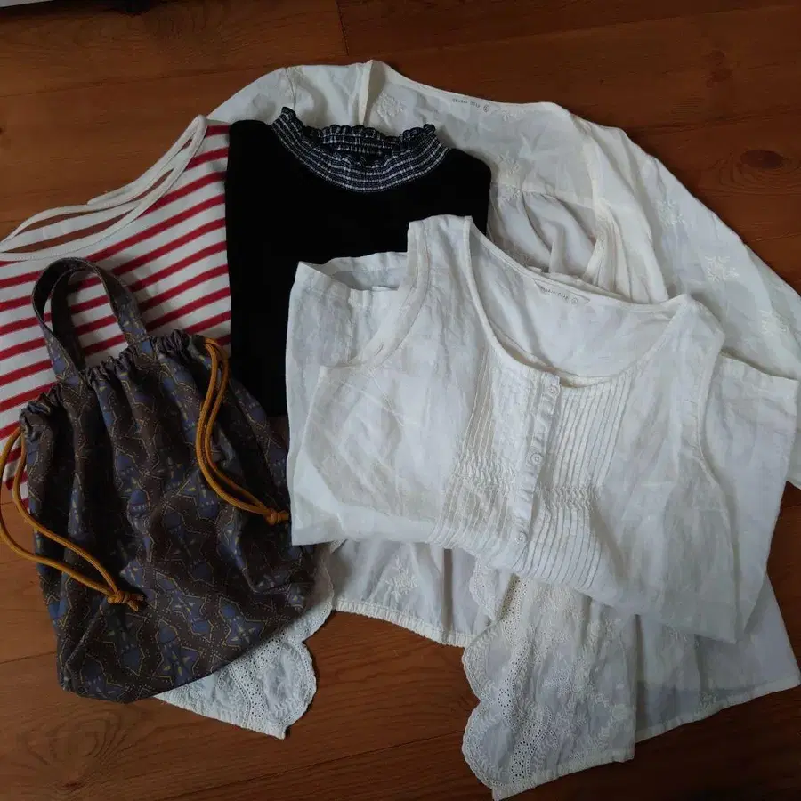 스튜디오 클립 5세트 상의, 가디건, 슬리브리스, 복조리 백