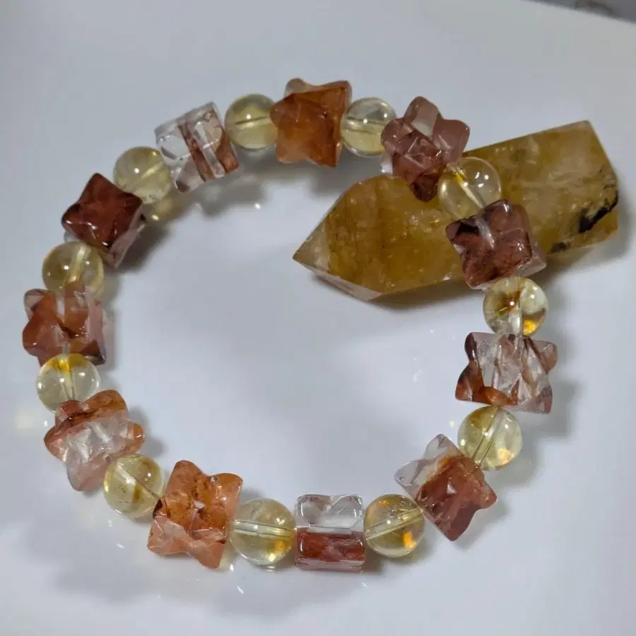금전운 사업 번창 라이모나이트 인 쿼츠 큐브 x 시트린 래더 팔찌