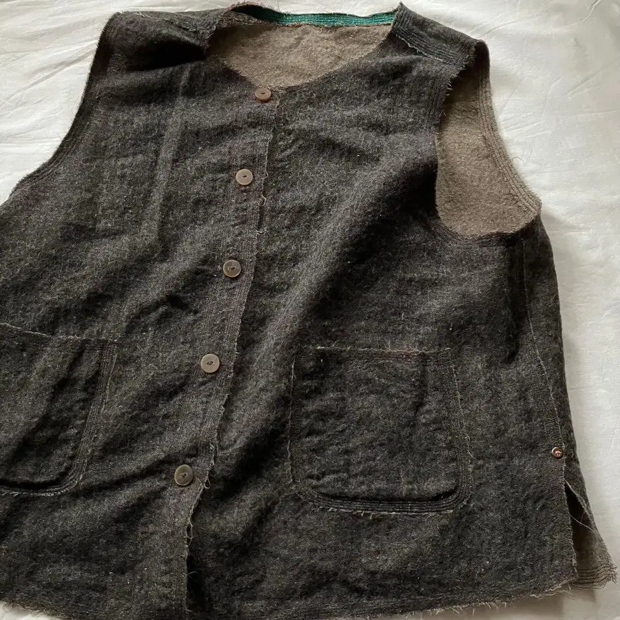 • 퍼 베스트 오버 사이즈 빈티지 스타일 여성 빈티지 구제 카멜