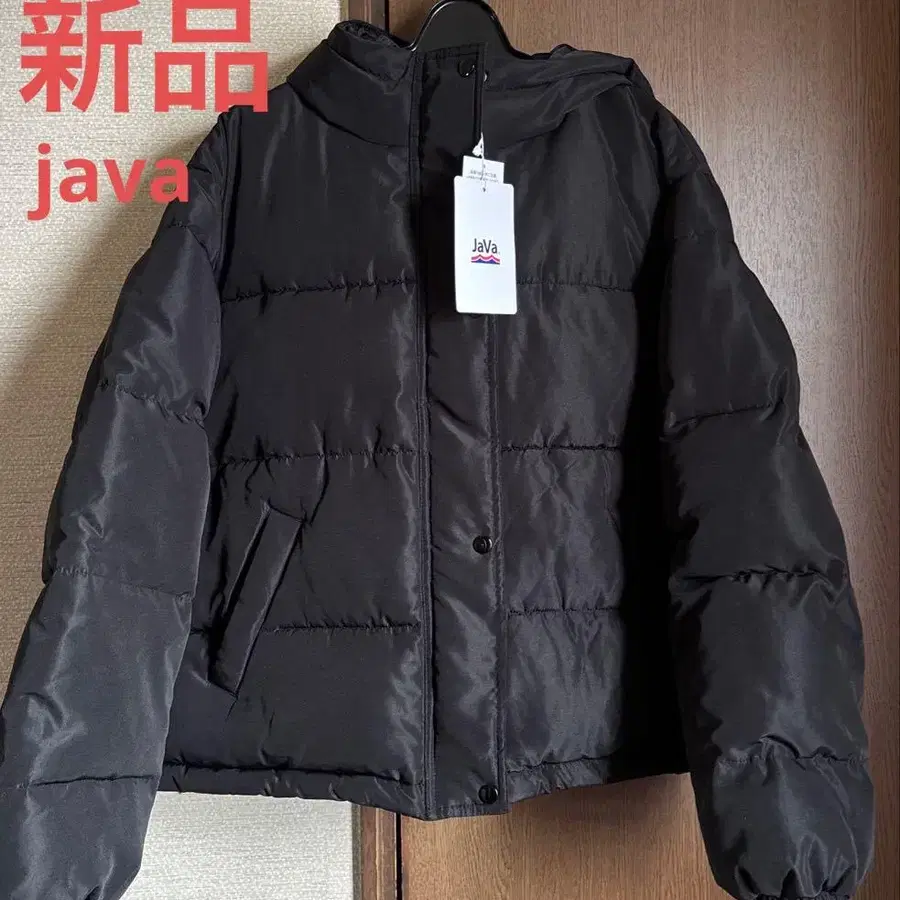 [자바 콜라보] 숏 기장 후드 부착 충전솜 페이크 다운 코트