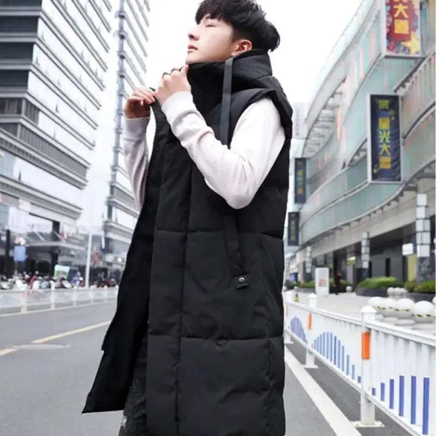 한국 블랙 롱 다운 베스트 빅 실루엣