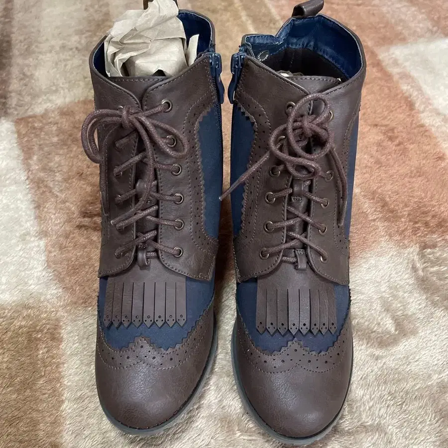 EDWIN 프린지 레이스업 부츠 브라운 네이비