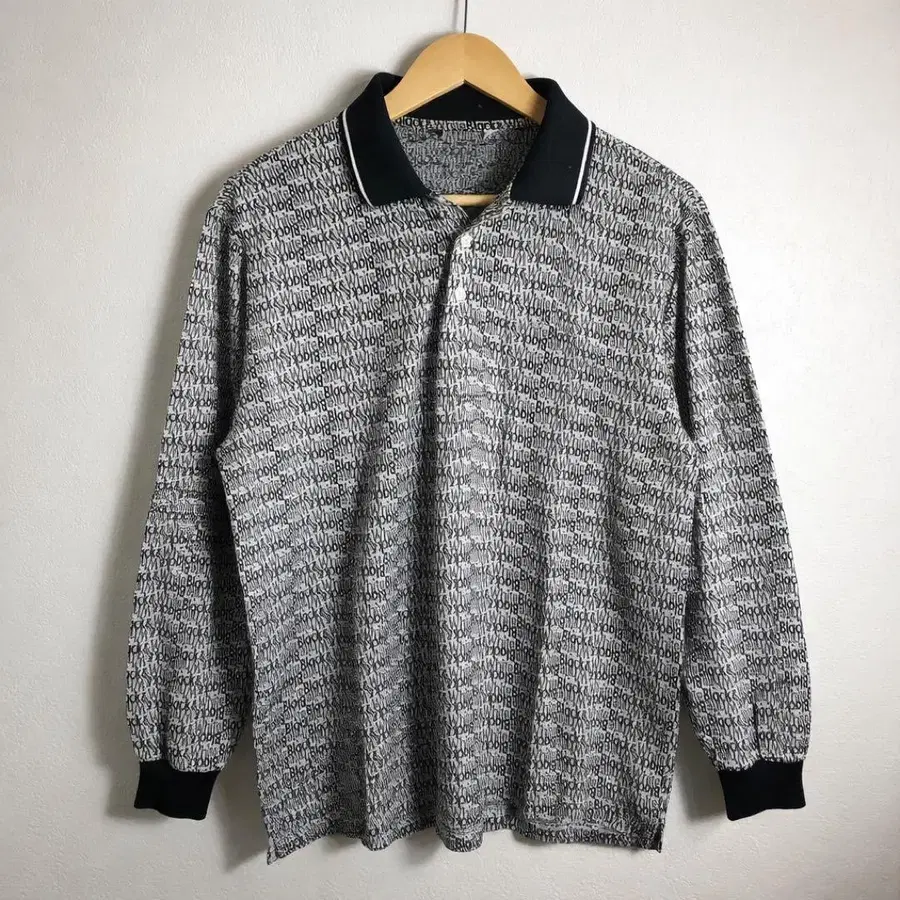 빈티지 피케 셔츠 셔츠 긴팔 올 패턴 화이트 블랙 모노톤 블랙