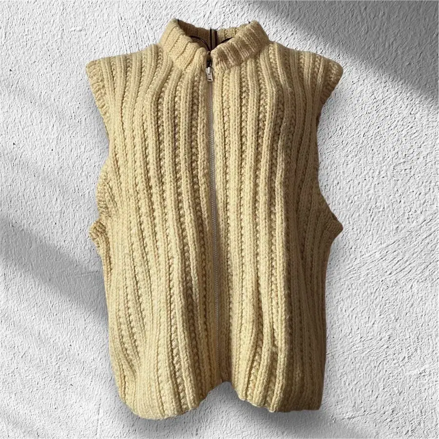 [레어] 아이보리 니트 베스트 집업 구제 의류풍 두꺼운 원단 핸드메이드풍