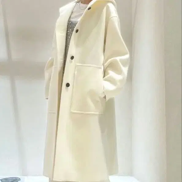알아바일 후드 부착 롱 코트 화이트 미사용 택 포함