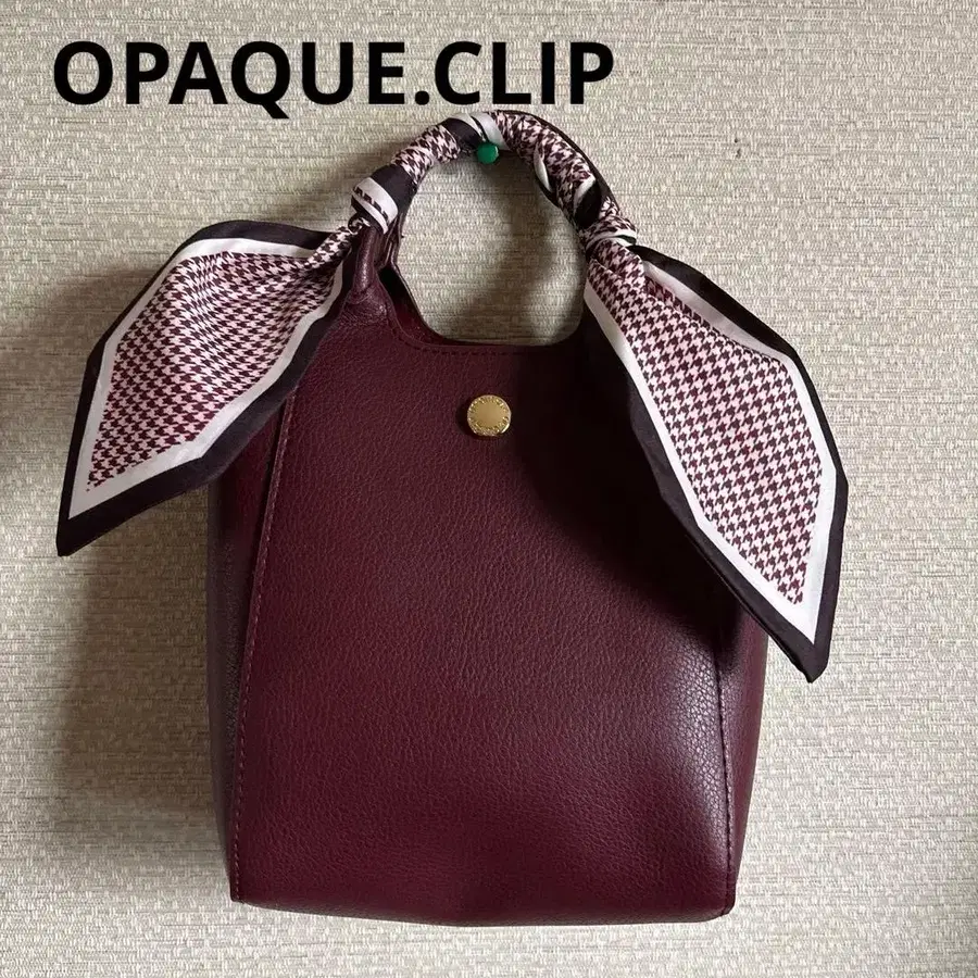 OPAQUE.CLIP 버건디 가죽 미니 백 스카프 포함
