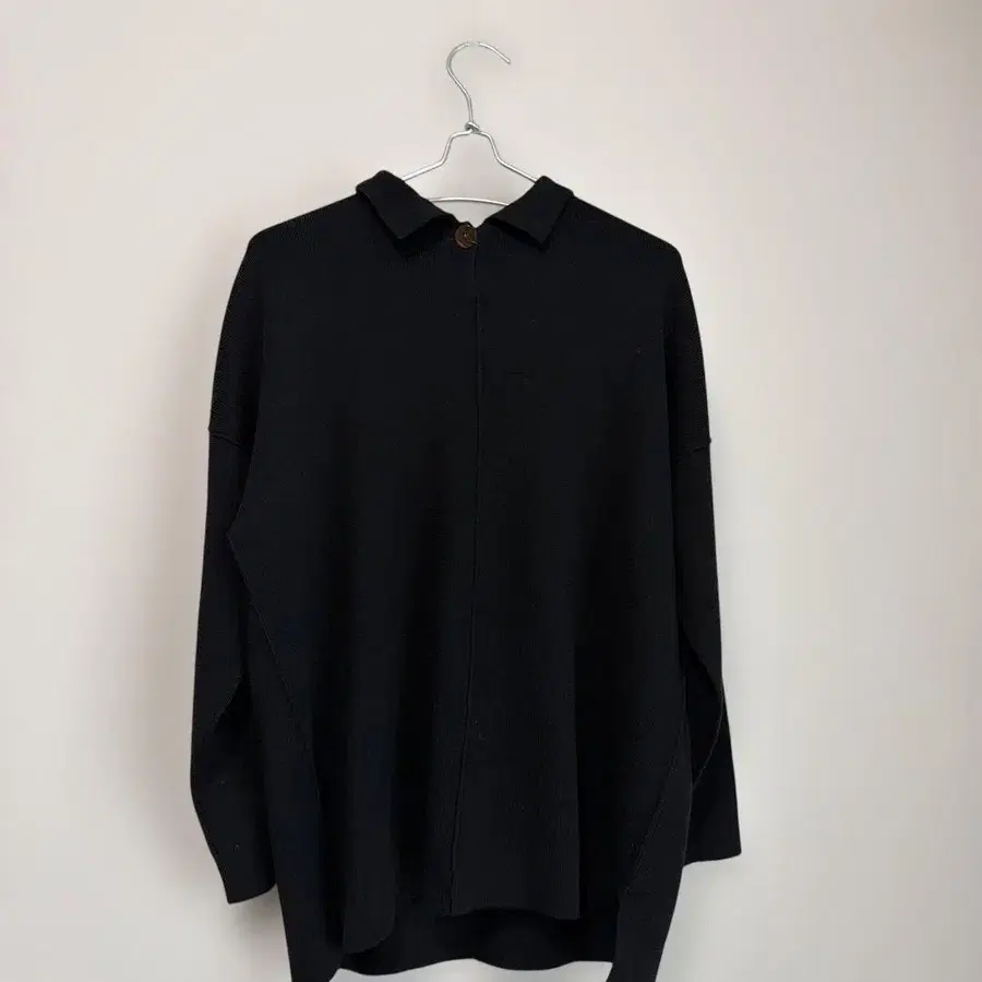RENOWN 레나운 블랙 카라 부착 긴팔 니트 스웨터 울 100%