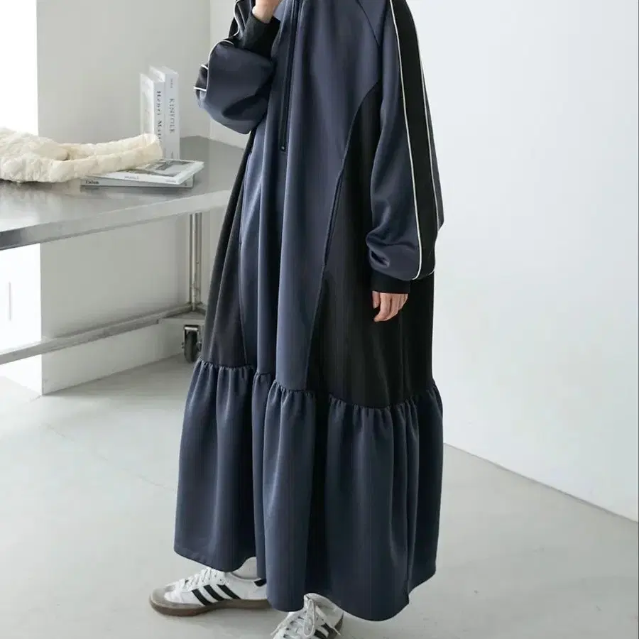 forksy. 하프 지퍼 라인 배색 트랙 저지 원피스
