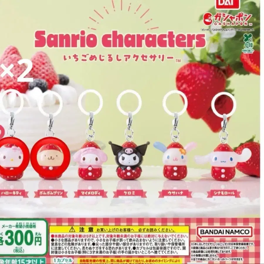 산리오 딸기 표시 액세서리 키티 x 2 폼폼푸딩 x 1