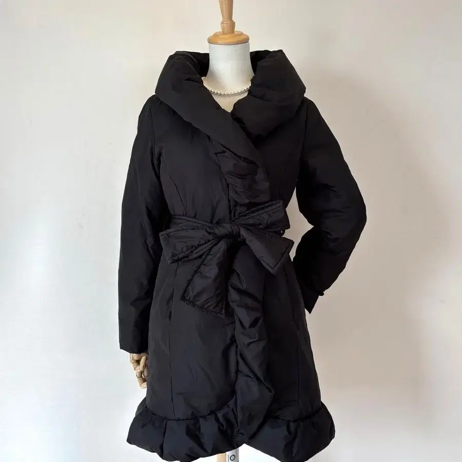 몸통부터 밑단까지 은은한 프릴 디자인이 적용되어 심플하면서도 고급스럽고 귀여운 인상을 주는 코트입니다.
