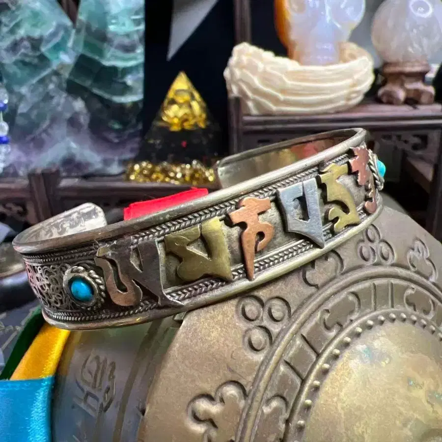 티베트 전통 극희소 육자진언 팔찌 반지 리마 구리 정교 상감 수공예