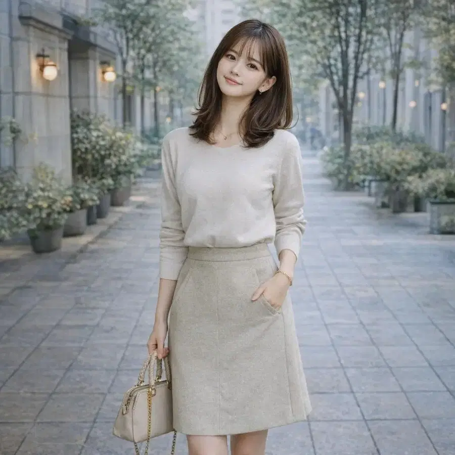 [agnes b] 미디 스커트 S 베이지 프랑스 깔끔한 울