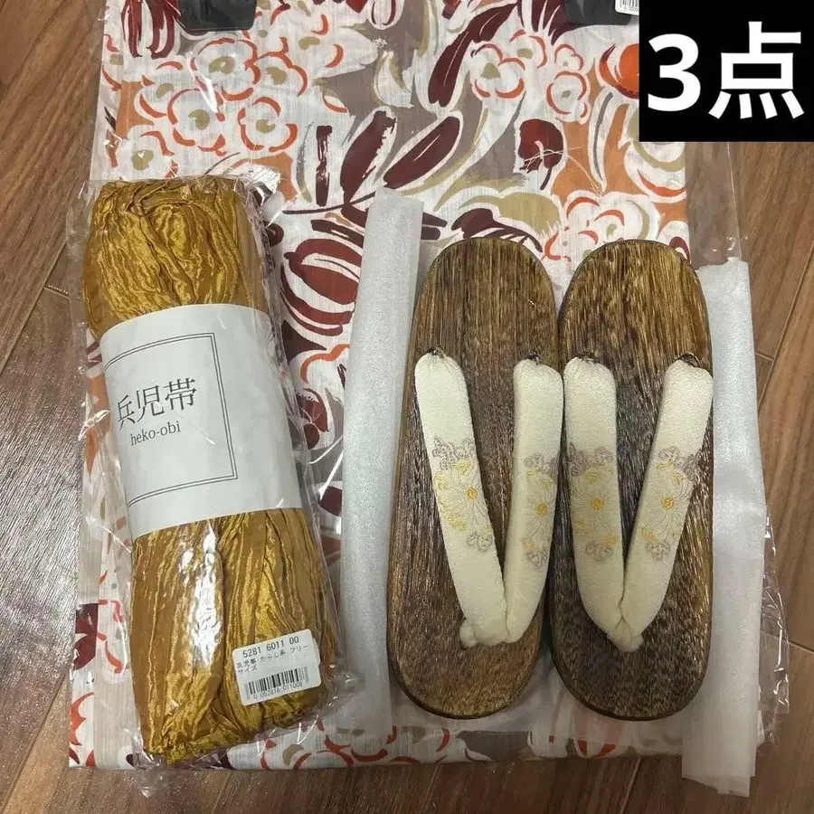utatane 유카타 애프리콧 오렌지 x 겨자 (오비) 일본 나막신 3점