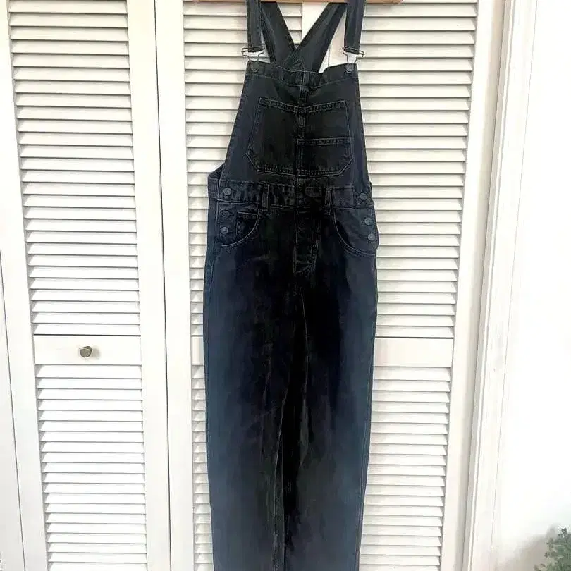데이지 오버롤 와이드 팬츠 데님 워시 가공 블랙 S