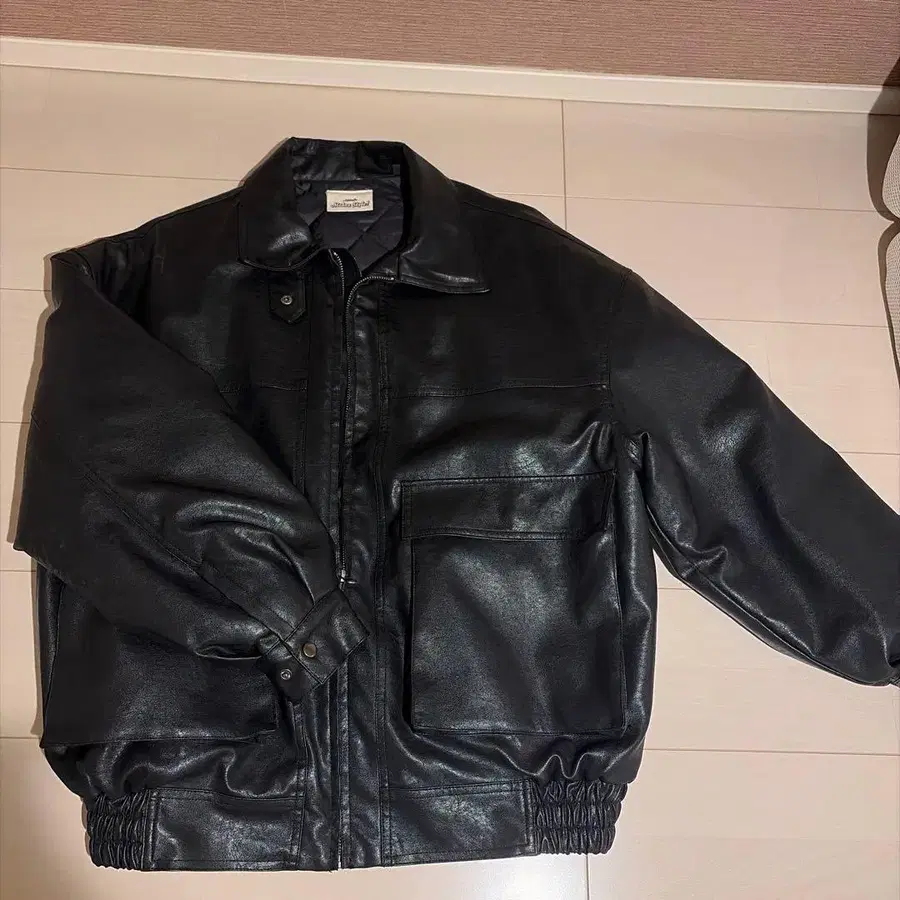 블랙 페이크 가죽 자켓 지퍼 포함