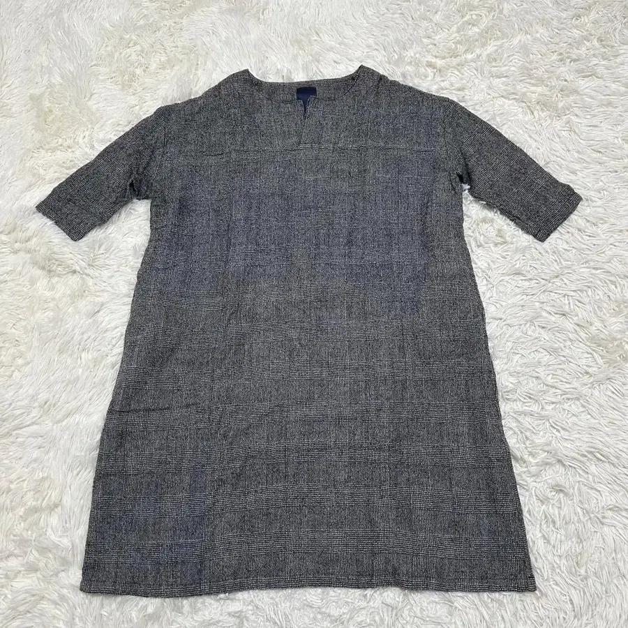 울 100 체크 무늬 롱 원피스 그레이