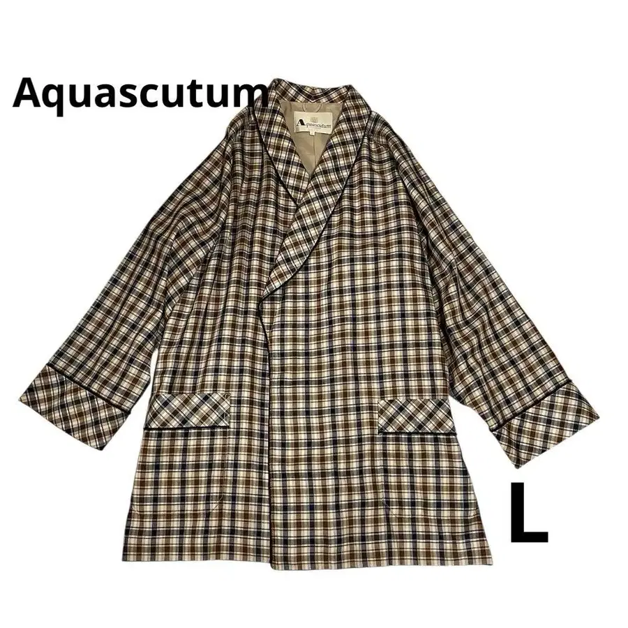 새상품급 아쿠아 스큐텀 가운 코트 코튼 소재 체크 L
