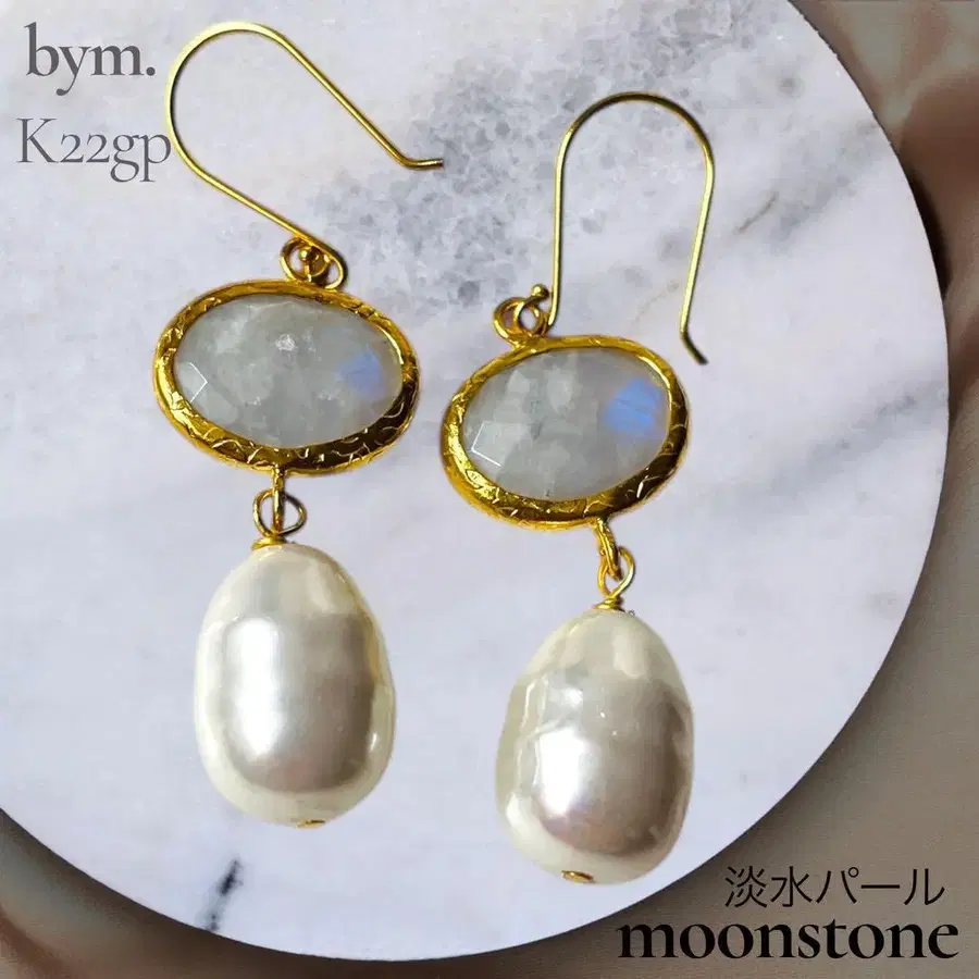 새상품 bym. K22 골드 문스톤 x 담수 진주 흔들리는 드롭 귀걸이