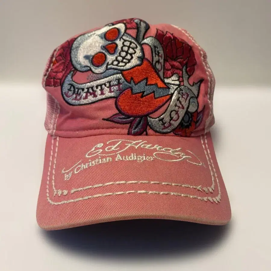 Ed Hardy 스컬 자수 핑크 데미지 캡
