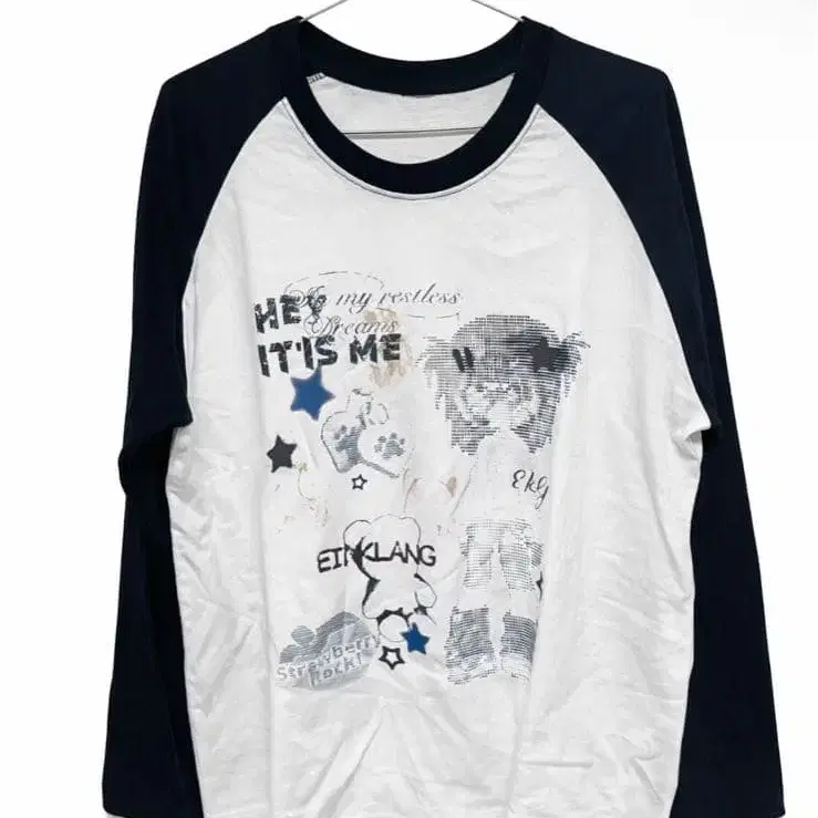 그런지 계열 래글런 롱 T / 화이트 x 블랙 프린트 디자인