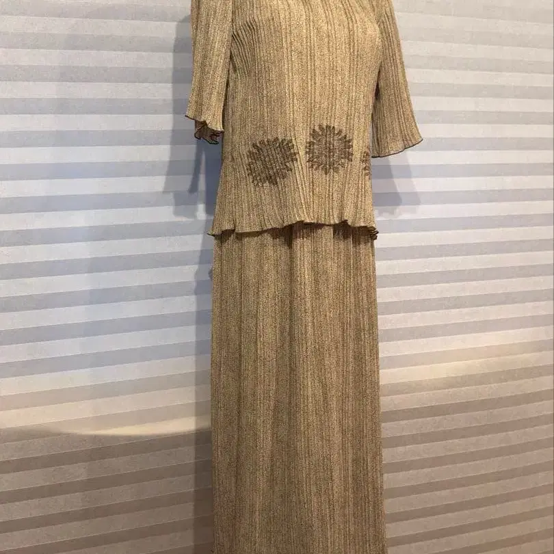 하디에미스 베이지 계열 플리츠 꽃무늬 자수 셋업