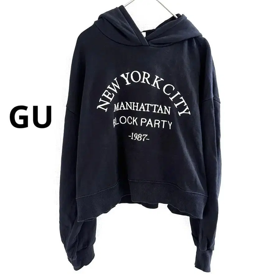 GU 로고 자수 후드티 숏 블랙 여성용 L 귀여운