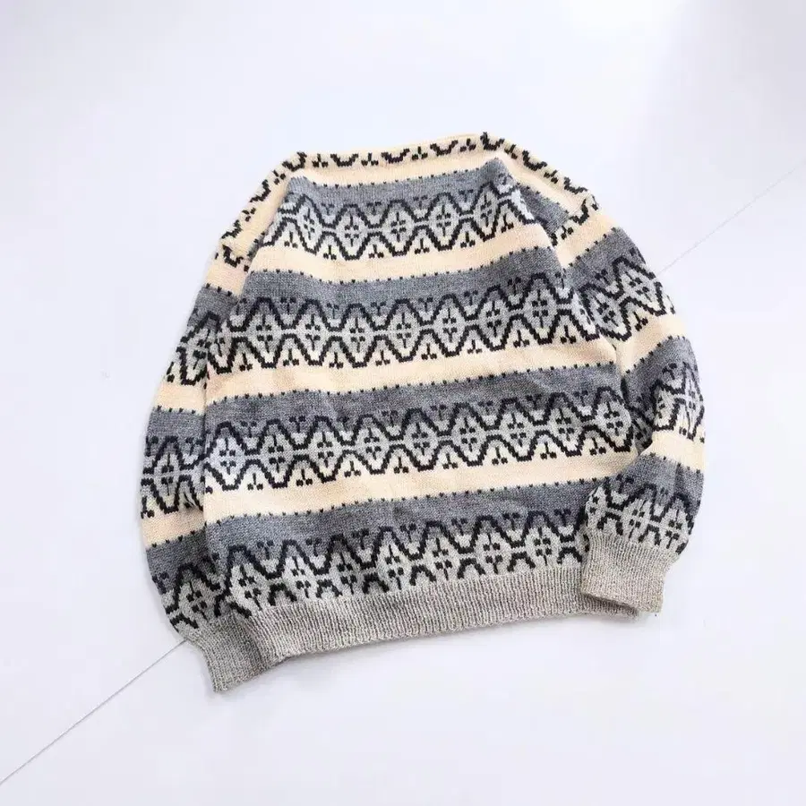 북유럽 노르딕 무늬 보트넥 총 패턴 니트 스웨터 그레이 A7
