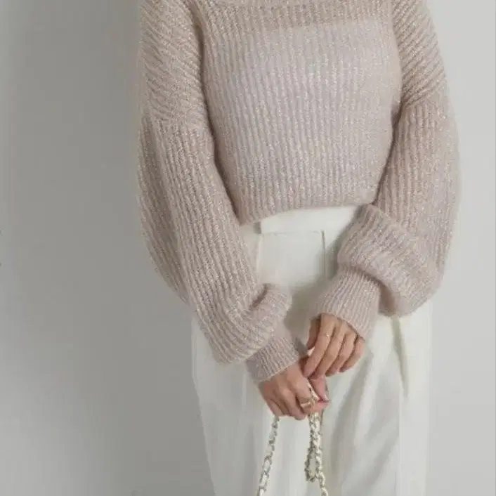 La boutique BonBon 키드 모헤어 라메 크롭 니트
