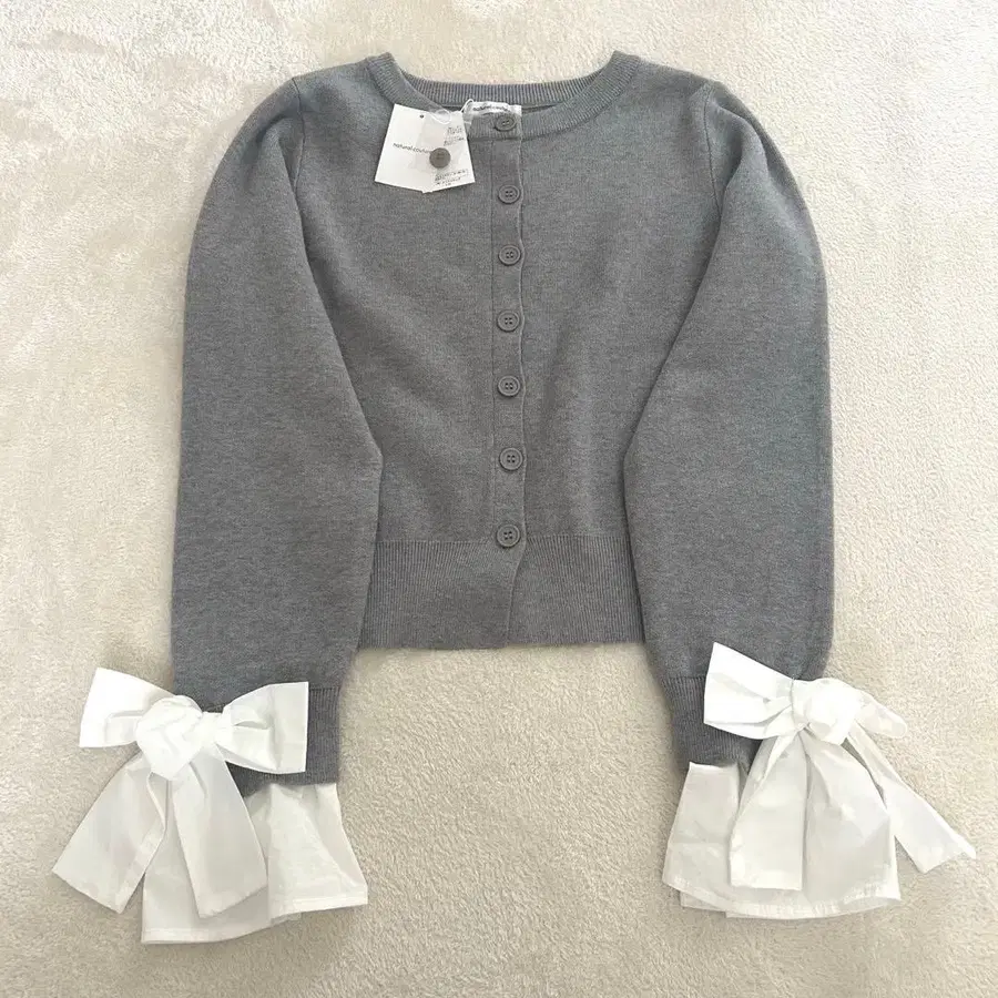 [ 택 포함 새상품 ] 내추럴 꾸뛰르 소매 리본 크루넥 가디건