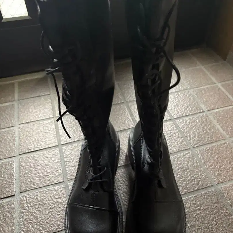 블랙 통굽 롱 부츠
