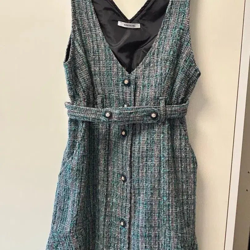 [새상품급] REDYAZEL 트위드 오버롤 스커트 그린