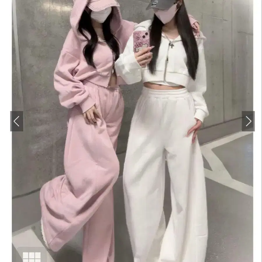 더블 지퍼 후드티 x 와이드 팬츠 속기모 맨투맨 셋업[ru1331]
